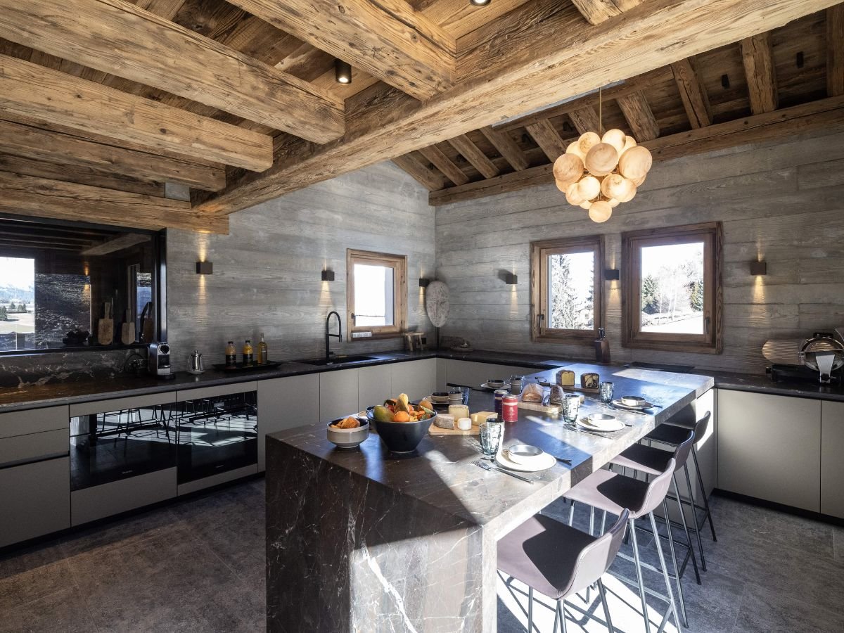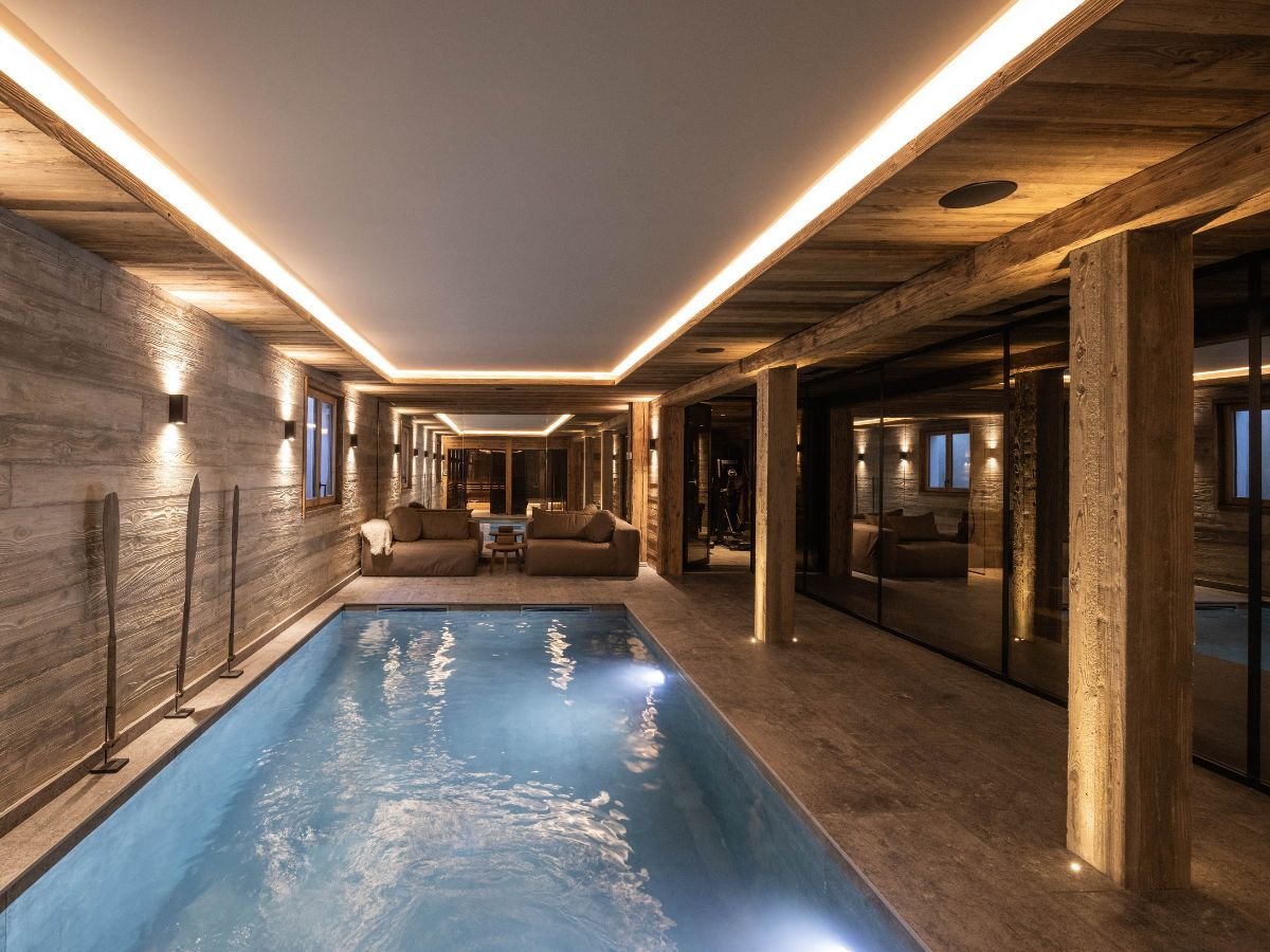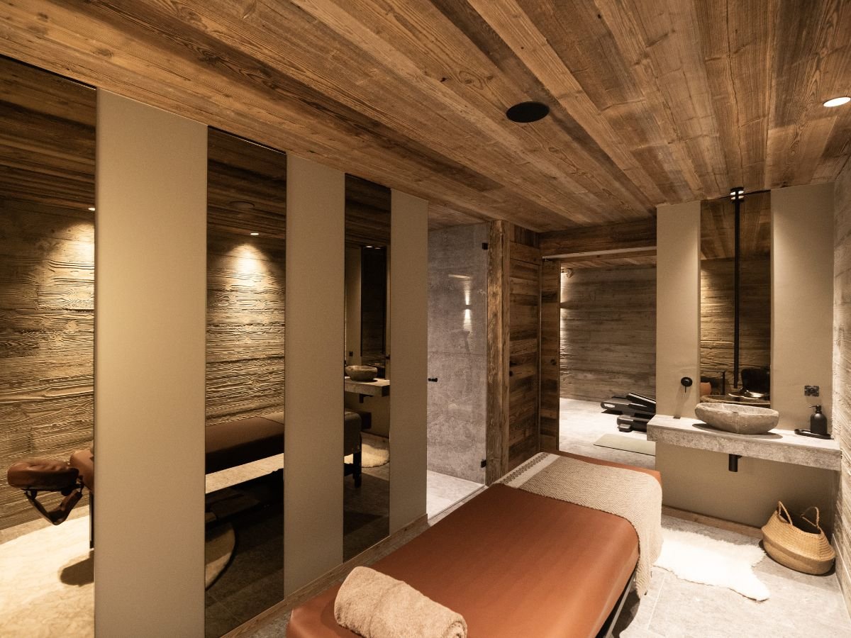 Designed for ultimate relaxation, the chalet includes a private wellness area with indoor swimming pool, sauna, hammam, gym and massage room, as well as a ski room for convenient access to the slopes. Combining modern comfort with alpine charm, Chalet de la Croix is the perfect base for a luxury mountain stay in Megève.