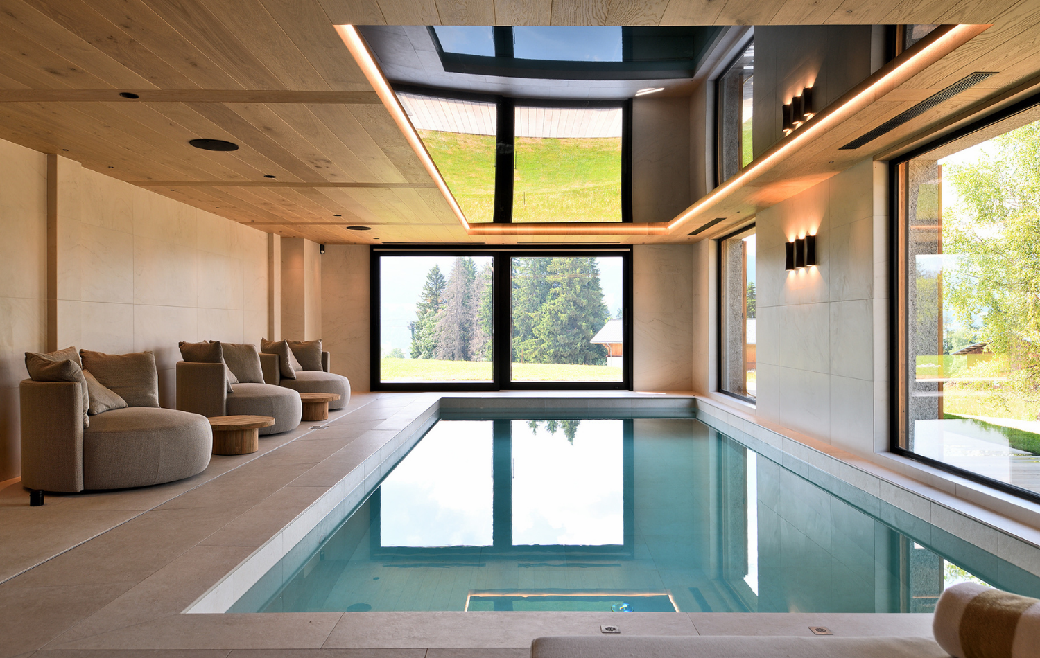 An ultra-luxury alpine retreat offering privacy, bespoke interiors and exceptional wellness facilities. With approximately 600–650 m² of living space, six en-suite bedrooms and a complete spa area including pool, sauna and hammam, Chalet Oria represents one of the most exclusive private chalets available for rent in Megève.