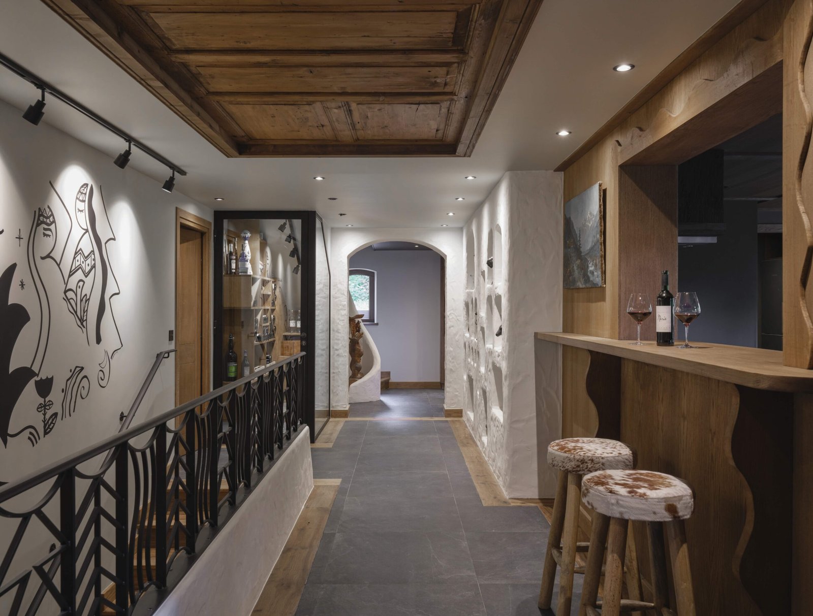 Designed for relaxation after a day on the slopes, the chalet offers a private wellness area including a sauna, fully equipped fitness room and Nordic bath, creating the perfect setting for a luxury mountain retreat.