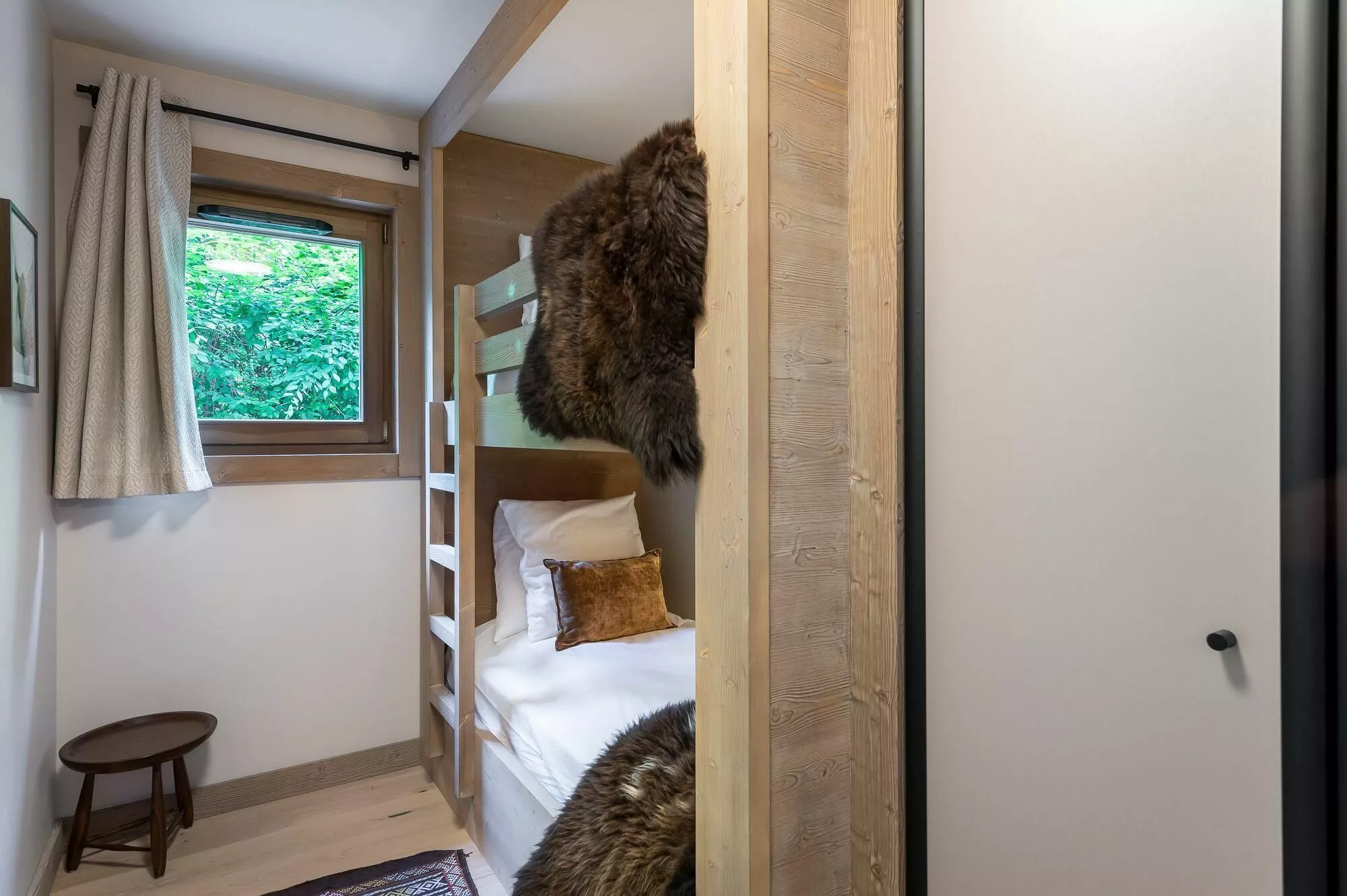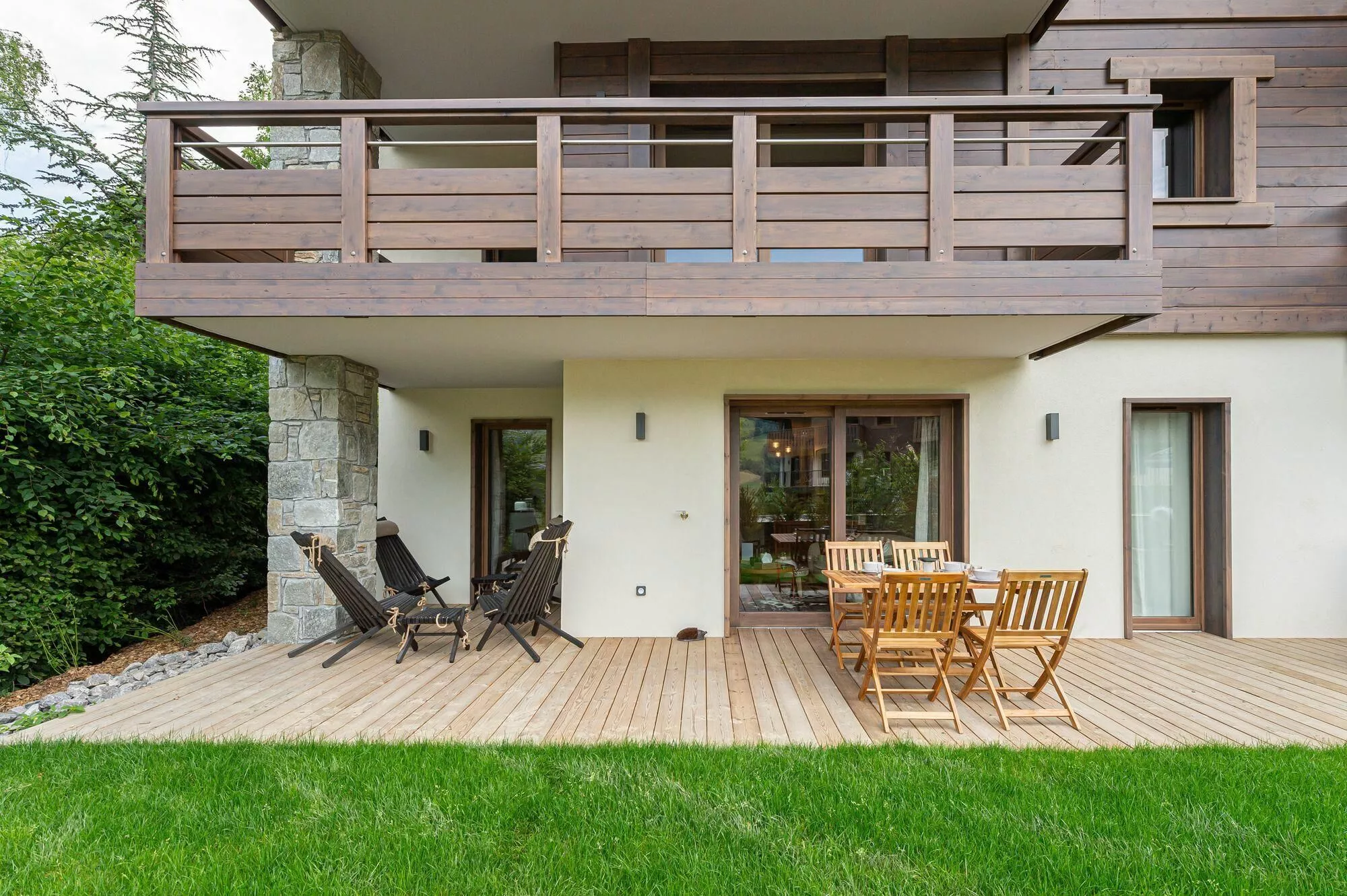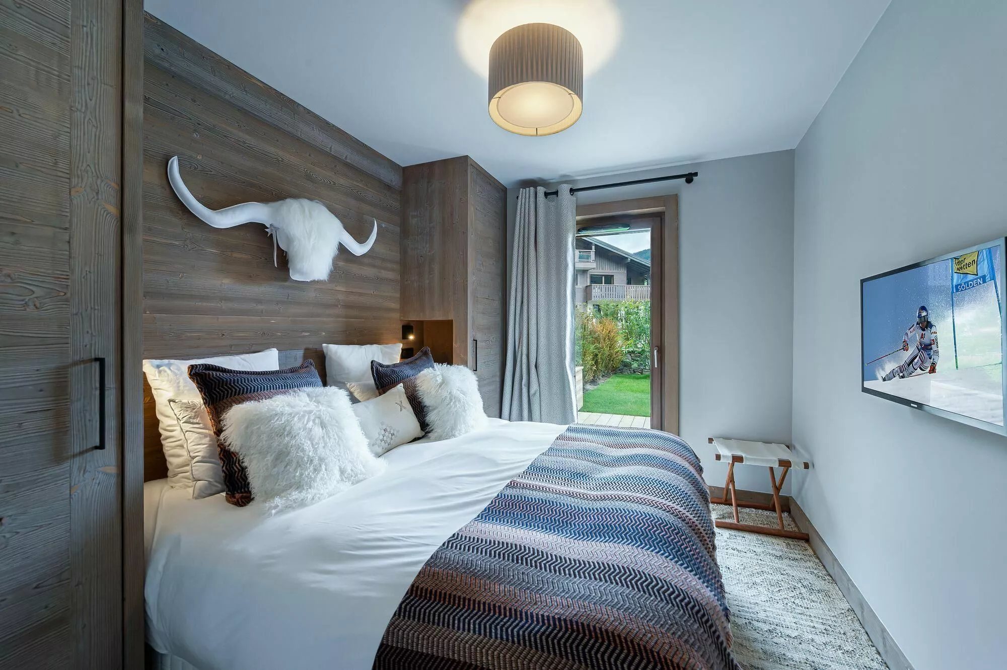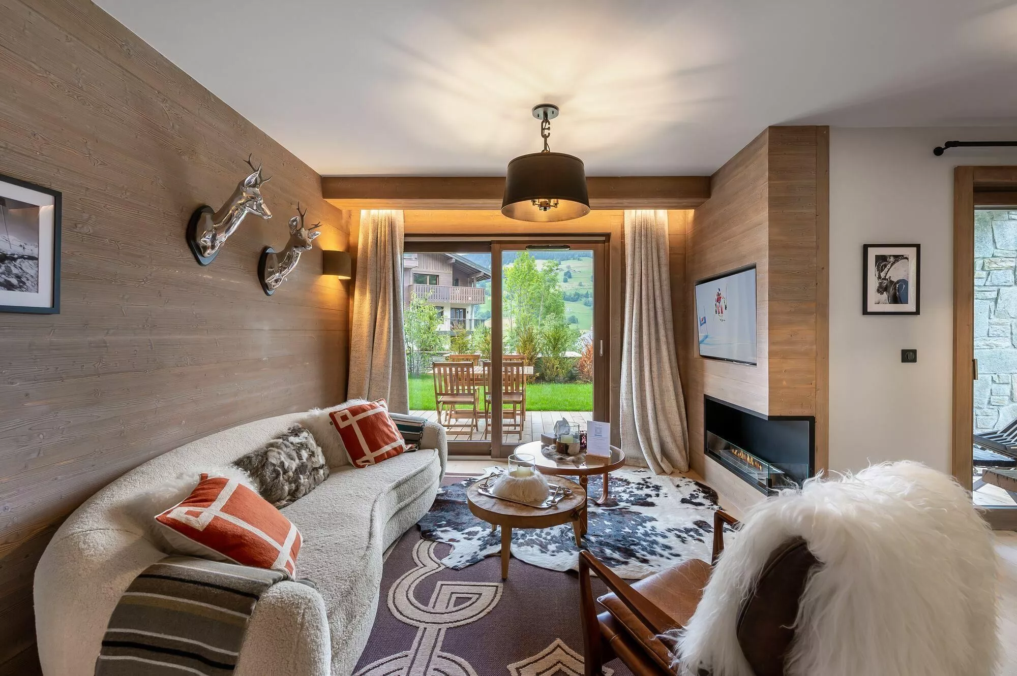 Apartment Stallion A03 is a cosy and elegant alpine apartment located in a new residence in the peaceful Rochebrune area of Megève. Offering approximately 83 sqm of living space, it combines contemporary design with a warm mountain atmosphere. The bright living area features a fireplace, an open-plan kitchen, and large windows opening onto a private garden and terrace. Designed for families or small groups, it comfortably accommodates both adults and children in a refined and relaxing setting.