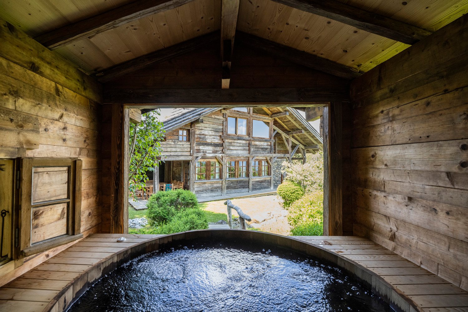 Authentic and elegant alpine chalet located in the hamlet of Les Choseaux near the Mont d’Arbois plateau, just a few minutes from the center of Megève. The property combines traditional Savoyard architecture with refined interiors featuring exposed wooden beams and antique furnishings sourced locally. Spacious living areas, a large terrace facing nature and a wellness space with sauna and Nordic bath create a warm and relaxing mountain retreat ideal for families or groups.